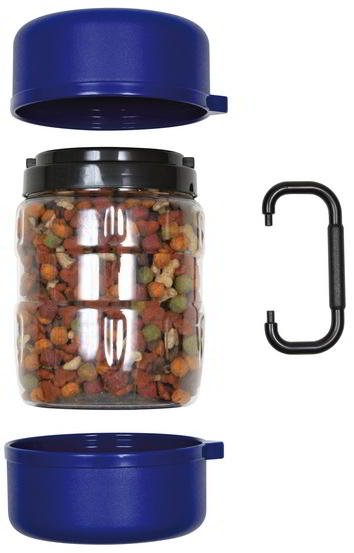 - Recipiente de alimento contém 2 litros e 2 taças de 0,75 l cada