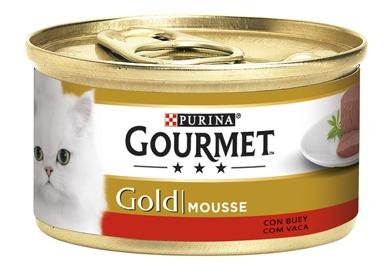 GOURMET® Gold Mousse com Carne de Vaca. Suave Mousse, cuidadosamente preparadas para oferecer ao seu gato o prazer de uma delicada e suave sensação.