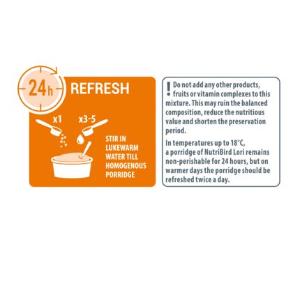 Lori contém todos os elementos nutritivos que loris e papagaios do figo encontram em flores no campo. Por isso, com Lori, é mais fácil criar estas aves magníficas e obter excelentes resultados de reprodução. Os níveis das proteínas satisfazem as necessidades específicas dessas aves.