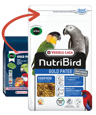 Nutribird Gold patee grandes periquitos & papagaios é uma papa de ovo pronta a usar para todo tipo de periquitos grandes, papagaios, catatuas e araras.