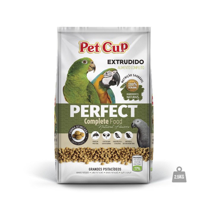 Com a ração PERFECT Grandes Psitacídeos, oferece todos os ingredientes na mesma proporção dentro de cada grânulo ou croquete extrudido. Garantindo assim uma alimentação equilibrada com todos os nutrientes necessários para uma vida saudável.
