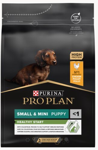 PURINA® Pro Plan® Small & Mini Puppy com OPTISTART®, alimento seco para cão rico em frango é um alimento seco completo para cão que contém uma combinação específica de nutrientes para cães de diferentes tamanhos, OPTINUTRITION®, que ajuda a suportar a sua saúde a longo prazo.