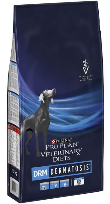 Canine DRM Dermatosis™ é uma dieta veterinária completa para cães adultos e cachorros, que suporta a pele em casos de dermatose ou queda excessiva de pelo. Canine DRM Dermatosis contém um número limitado de fontes proteicas selecionadas para ajudar a minimizar quaisquer reações alimentares adversas. Contém nutrientes dirigidos para a pele para ajudar a promover uma pele e pelo saudáveis e para suportar a regeneração de lesões tais como proteína de elevada qualidade, zinco e vitaminas.
