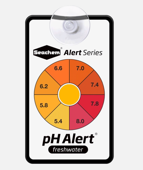 pH Alert ™ é um dispositivo de cor original concebido para ser colocado no aquário ou filtro e monitorar continuamente o pH. Um sensor muda de cor reversível para alertá-lo das mudanças nos níveis de pH entre 5,8 e 8,2. Sem testes, apenas leitura constante