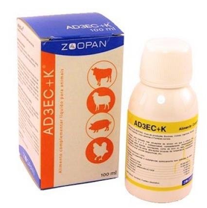 AD3EC+K contém vitaminas lipossoluveis que estimulam o crescimento, a fertilidade e a incubação.